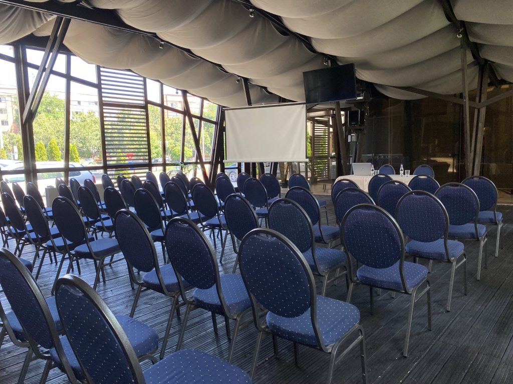 Punem la dispoziție o sală de conferințe cu facilități moderne și o atmosferă aparte, astfel încât evenimentul dumneavoastră să fie cu adevărat memorabil. Fie că organizați o conferință de business, un seminar sau o prezentare importantă, spațiul nostru generos și flexibil permite configurări personalizate, adaptate nevoilor dumneavoastră.
